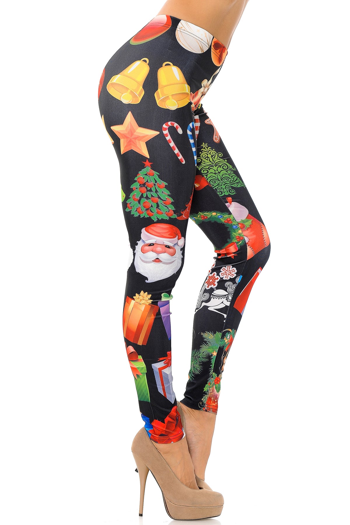 Stand out this season making a cheerful statement in our Everything Christmas Plus Size Leggings. These adorable festive bottoms feature a cartoon version of staple holiday symbols such as gingerbread men, Christmas trees, and gifts, brilliantly contrasted by a black background. Create a festive and bold casual look by pairing them with a red sweater and boots, or dress them up for a holiday party with heels and a blouse.