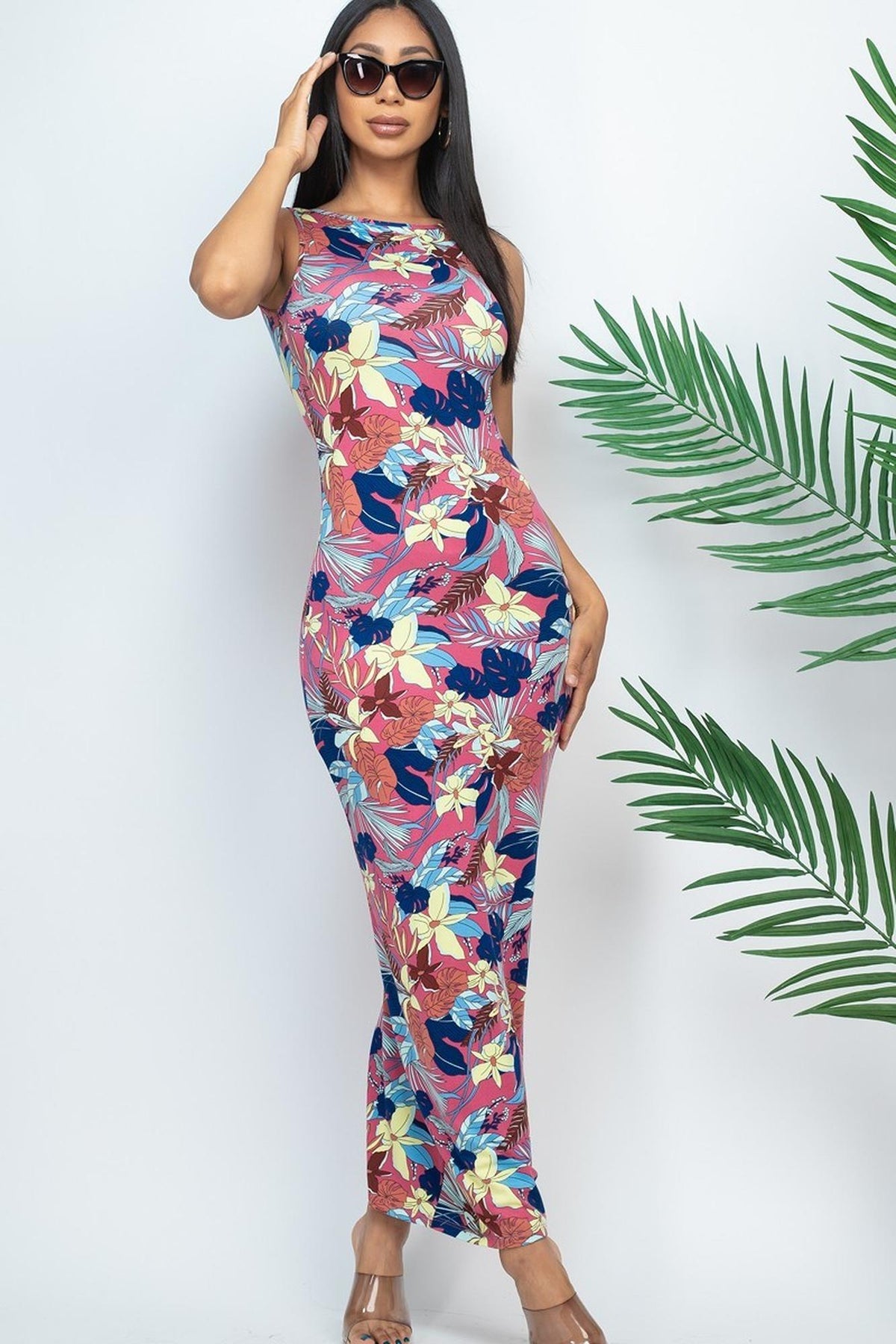 Floral Getaway Round Neck Bodycon Maxi Dress