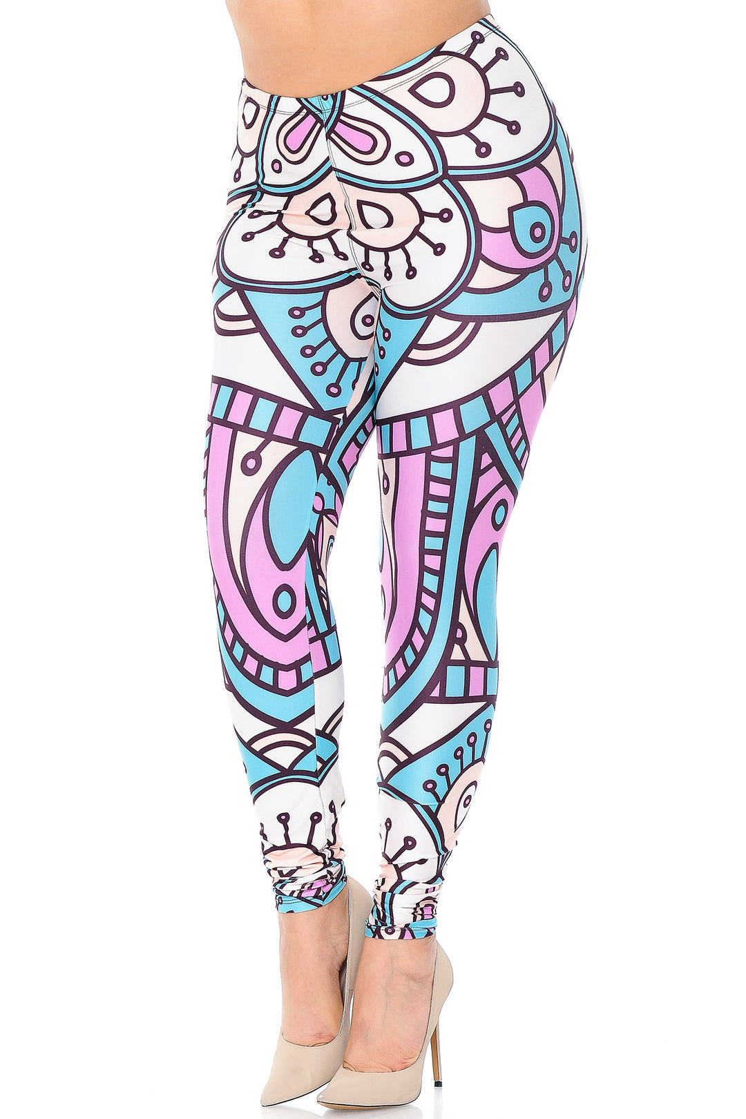 Creamy Soft Leggings Premium Women's Cute Mandala Extra Plus, High Rise, Stretchy, Comfortable, 3X-5X Leggings - by USA Fashion