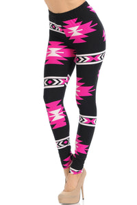 It's all about tribal prints this season with their fun geometric imagery that create an eye-grabbing look. These are our Buttery Smooth Fuchsia Aztec Tribal Leggings, and they feature a jumbo sized design that gives it an extra bold touch that will turn heads from afar.