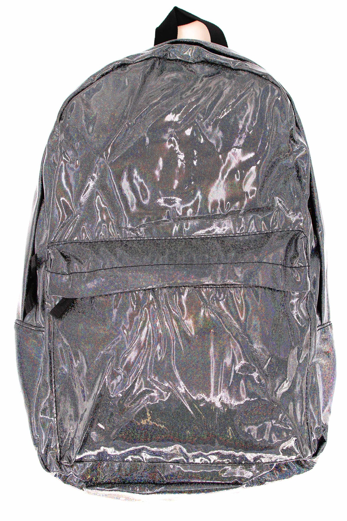 Shiny Silver Rainbow Glitter Metallic Backpack (One Size Regular,Silver)