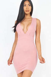 Front Tuck Bodycon Mini Dress with Plunging V Neckline