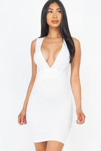 • A Body Fitted Mini Dress with a Sexy Deep V Neckline and High Back