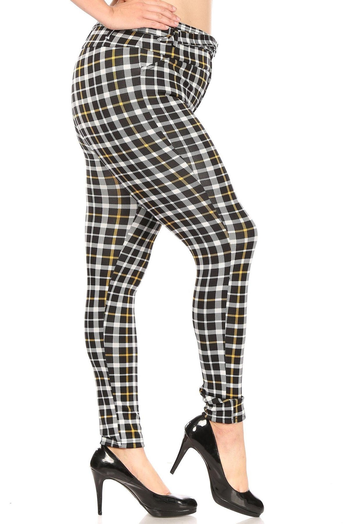 Create looks of any style from edgy to chic with these fabulous Belted Mustard Accent Plaid Plus Size Treggings with Pockets. They feature an all over plaid design and offer the appearance of stylish belted skinny pants while providing you with a comfortable stretchy leggings feel. Pair them with a band tee and combat boots for a cool rocker grunge inspired outfit, or dress them up with heels and a dressy top for an amazing brunch ensemble.