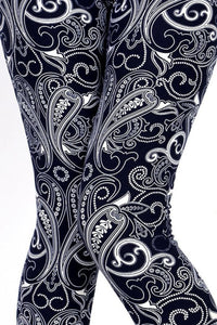 Buttery Soft Navy Paisley Leggings (One Size Regular,Navy)