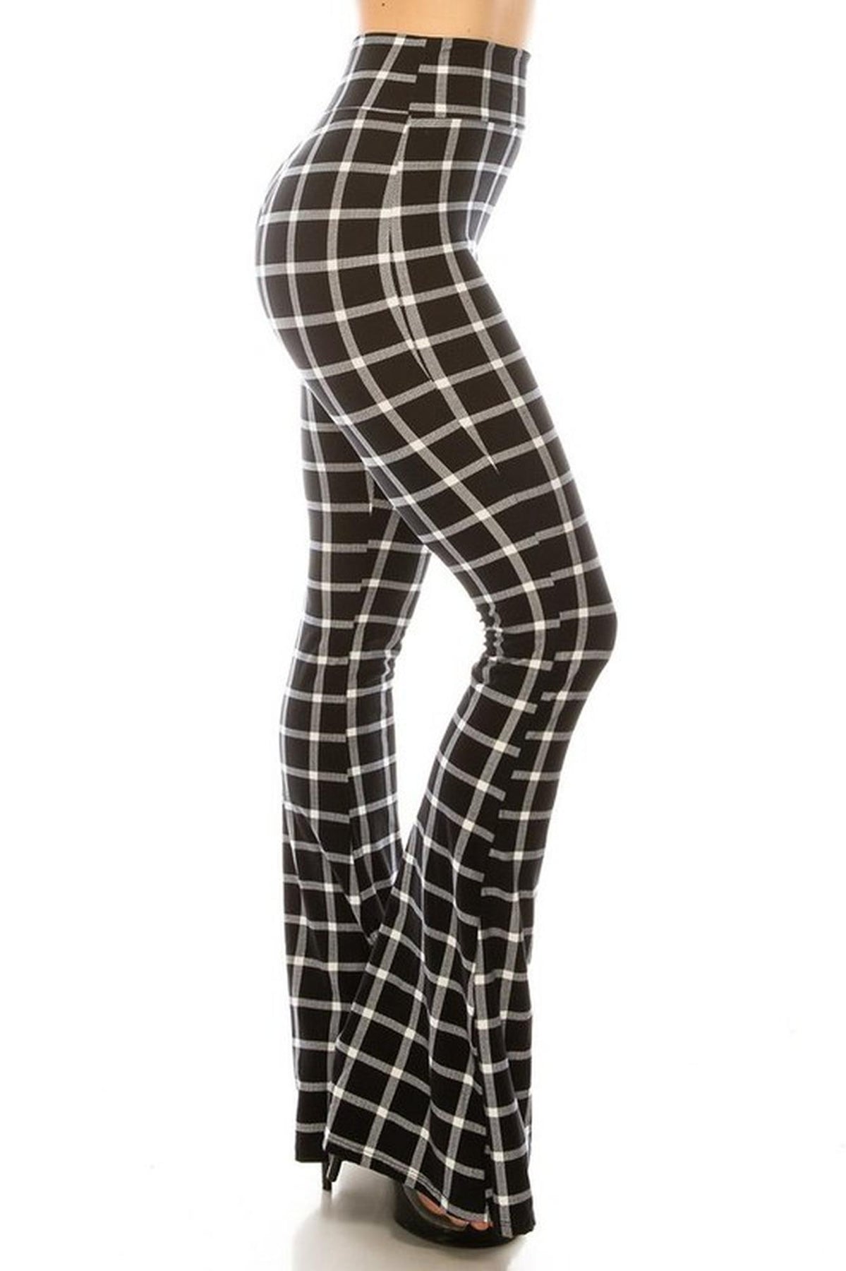 Get a trendy look with a touch of throwback style with these amazing Buttery Smooth Black and White Simple Plaid Bell Bottom Leggings. They feature an all over versatile black and white square design and a retro inspired flared leg opening for a fabulous winning combination. The neutral color scheme and fashion-forward cut offers the ability to create both dressy and casual looks.