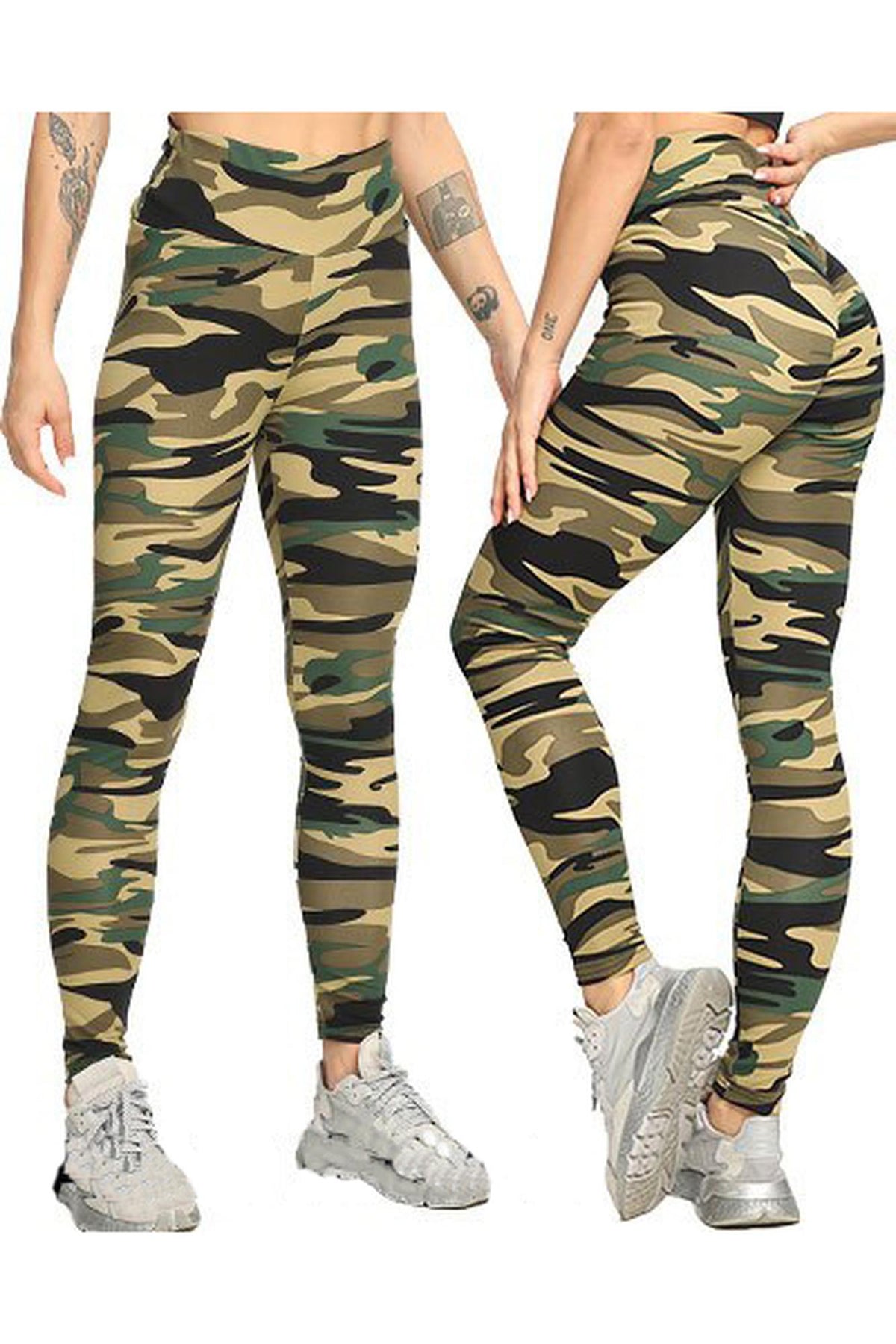 Everyone is raving about the incredible lifted and sculpted shape you get with these Dark Green Camouflage Scrunch Butt Sport Leggings. The durable high quality sport fabric is so comfortable with a 360 degree stretch, while the scrunching detail on the rear of this leg fashion piece offers an incredible booty enhancing look. Additionally, these sporty camo print leggings feature a flattering high waist and feature a trendy army print design making these athletic bottoms a favorite gym or everyday style staple.