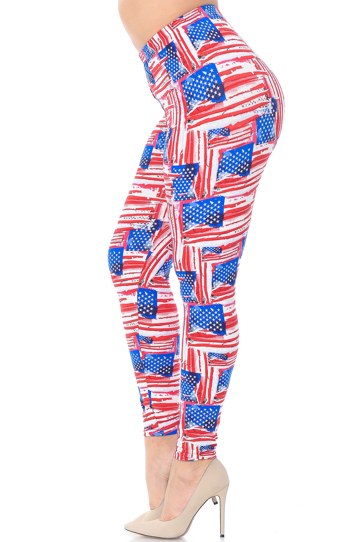 Add an artistic vibe to your Fourth of July look with our Buttery Smooth Watercolor USA Flag Plus Size Leggings. They feature an all over American flag print with a brush stroke style that gives them a fabulous painted appearance. Pair them with heels and a red, white, or blue top for the ultimate patriotic party outfit.