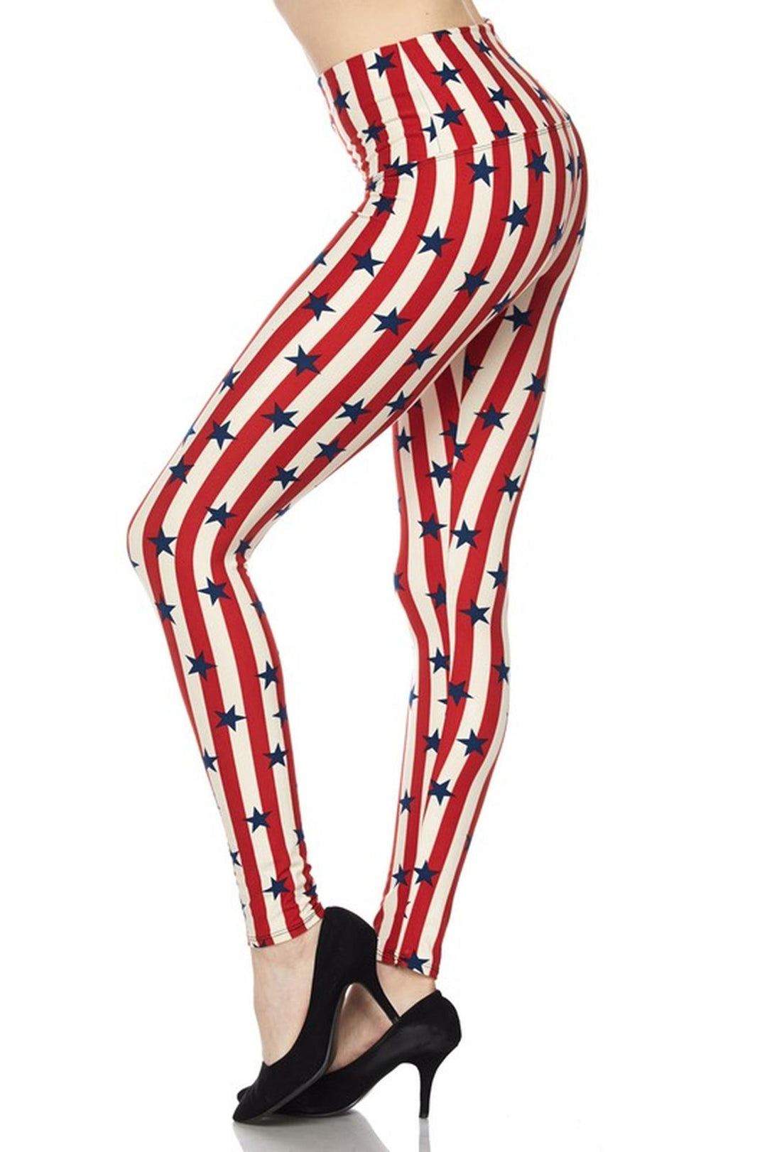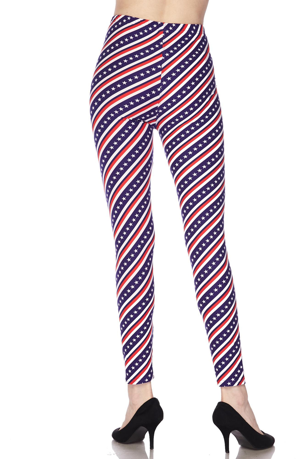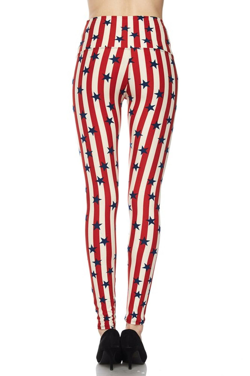 Show off patriotic pride with our large selection of USA flag leggings. Offered in a variety of fabrics, waist rises, lengths, and styles including bell bottoms, capris, and full length leggings, we have American flag leggings with stars and stripes in traditional form and unique takes on the USA flag. Our red, white, and blue USA flag leggings are great for 4th of July, patriotic holidays, and casual ensembles.